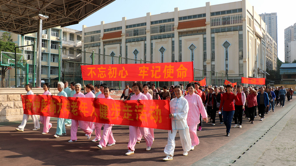 11月8日上午,秋高气爽,阳光明媚,Beat365离退休工作处、老年人体育协会结合现阶段“不忘初心、牢记使命”主题教育,组织Beat365离退休职工200余人,在明秀校区体育场开展老年人健步走活动。活动以离退休武术队一段精彩的“太极八法五步和健身气功(八段锦)”开场,接着开始进行深受大家喜爱的健步走活动。老同志们个个精神焕发,列队走在宽敞的跑道上,不仅锻炼了身体、享受了暖阳、还交流了感情、陶冶了身心。