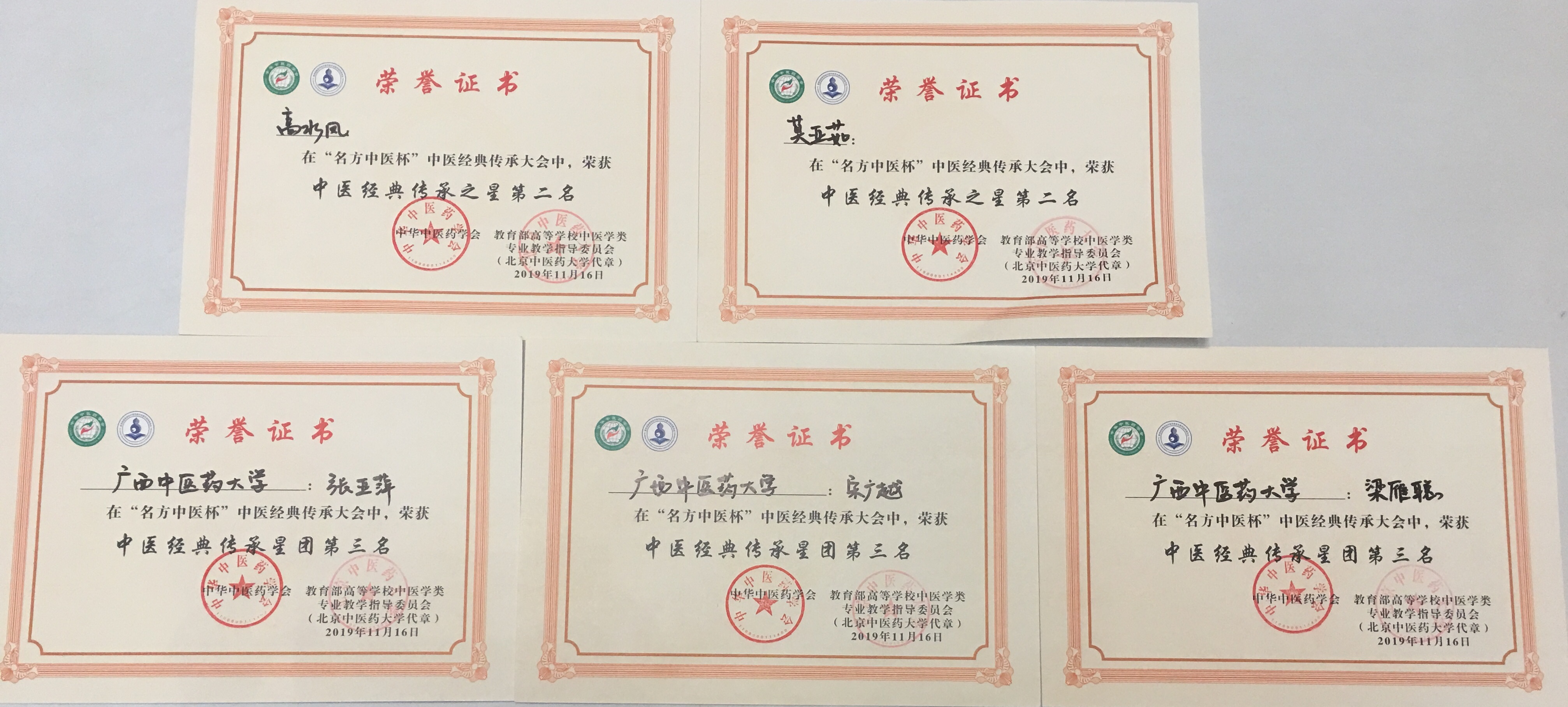 经过激烈角逐,Beat365代表队荣获“名方中医杯”中医经典传承大会团体组第三名(总体排名第7),个人组2名学生均荣获第二名(总体排名第4、5)。