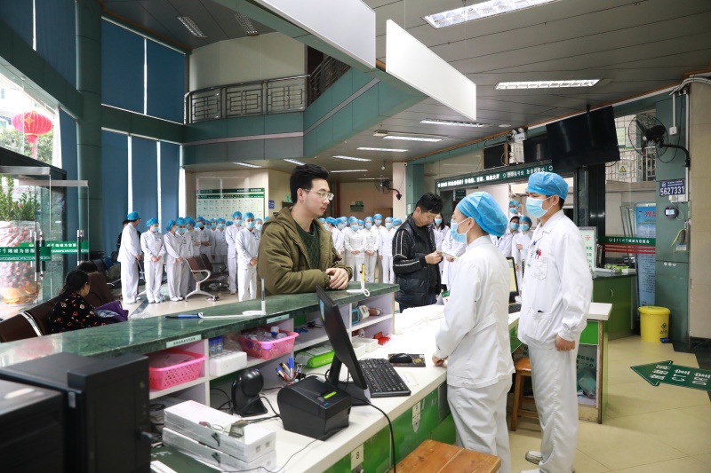 生命重于泰山,疫情就是命令,防控就是责任。门急诊第二党支部主要是由急诊科、感染性疾病科、发热门诊的党员构成,自疫情发生以来,门急诊第二党支部的党员就开始昼夜不懈地奋战在抗疫第一线。“经CT查验,该患者疑似感染新型冠状肺炎病毒,立刻联系院内专家组会查!”大年三十,本该是合家团聚的日子,该支部的党员王政林、廖进、胡勇却在这晚接到院内第一例疑似病例,他们冷静地按照院内早已下发的疑似病例处置流程,谨慎规范地开展隔离排查工作。谈到这例确诊病例,王政林说:“那天刚好是我值班。其实当时该患者的发热症状并不明显,但职业的敏感性告诉我,患者具备流行病学史这点不可忽视,因此,我们仍按照疑似病例的排查流程来处理。事实证实我们的想法是对的,经过严谨的排查,该患者被及时诊为“新冠”疑似病例,并及时转送到定点医院接受进一步治疗,最后通过核酸检测确诊为南宁市第一例新冠肺炎”。 在许多同志尚未熟悉防护设备及流程时,该支部的党员同志都是第一个站出来的,预检分诊、诊断排查随访、病例标本采样。