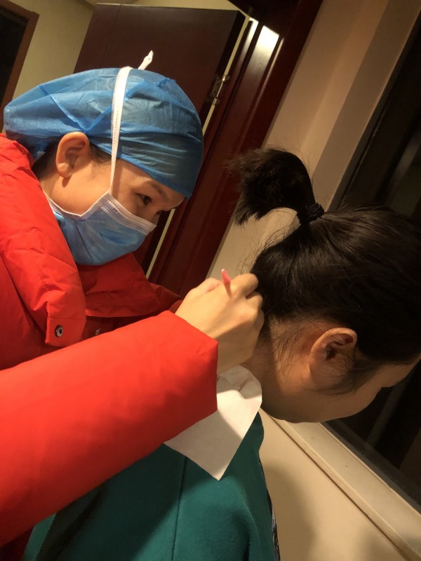 王冬敏为女队员理发