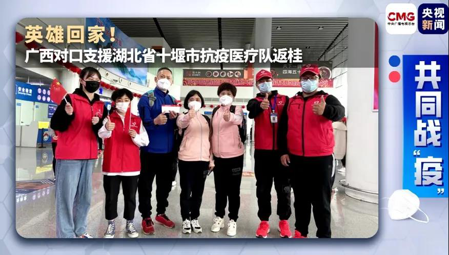 据悉,广西对口支援湖北省十堰市抗疫医疗队共有132名队员,除去今天平安返桂的112人,剩下的20名队员按国家要求继续驻留十堰市。已返桂的白衣将士们,将在定点酒店进行为期14天的隔离休整。