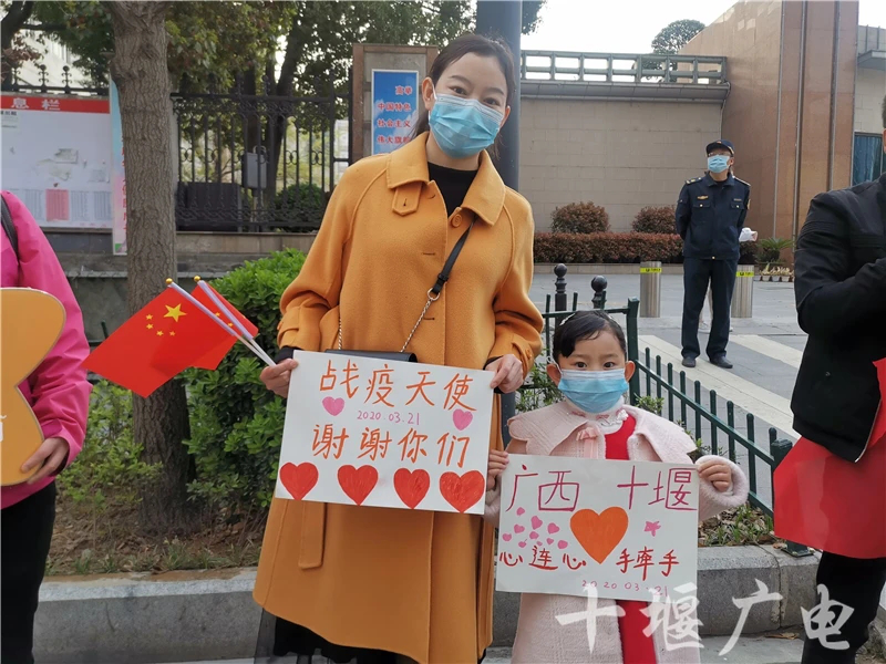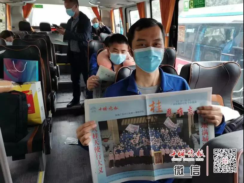 “三合汤感谢螺蛳粉”“千里驰堰抗疫,壮乡恩重如山”“漓江甘露润十堰,壮乡恩情耀楚天”, “桂”人相助,共克“十”艰!大巴车车身上,悬挂着红底白字的横幅,是十堰人民对广西医疗队的浓浓的感激之情。