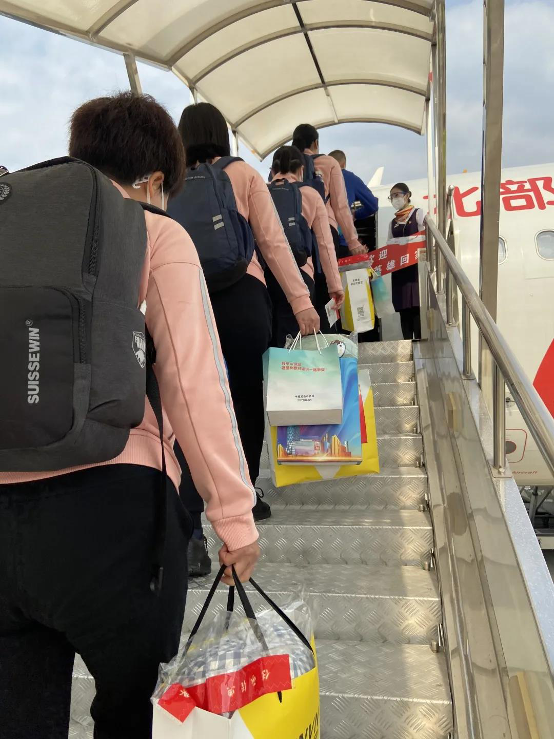英雄登机回家
