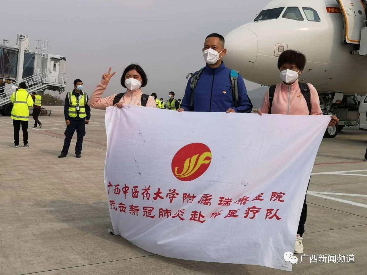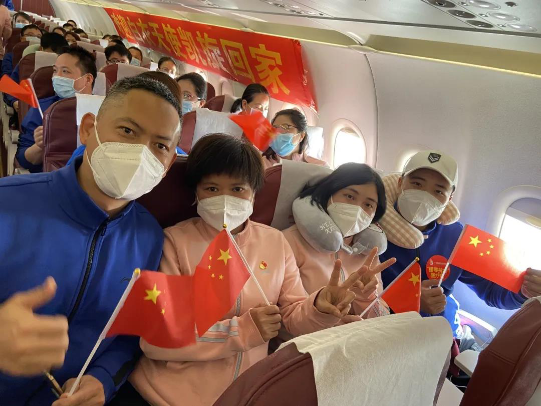经过安检后,Beat365援堰医疗队通过“凯旋门”,登上“胜利号”,开启返程美丽壮乡广西。