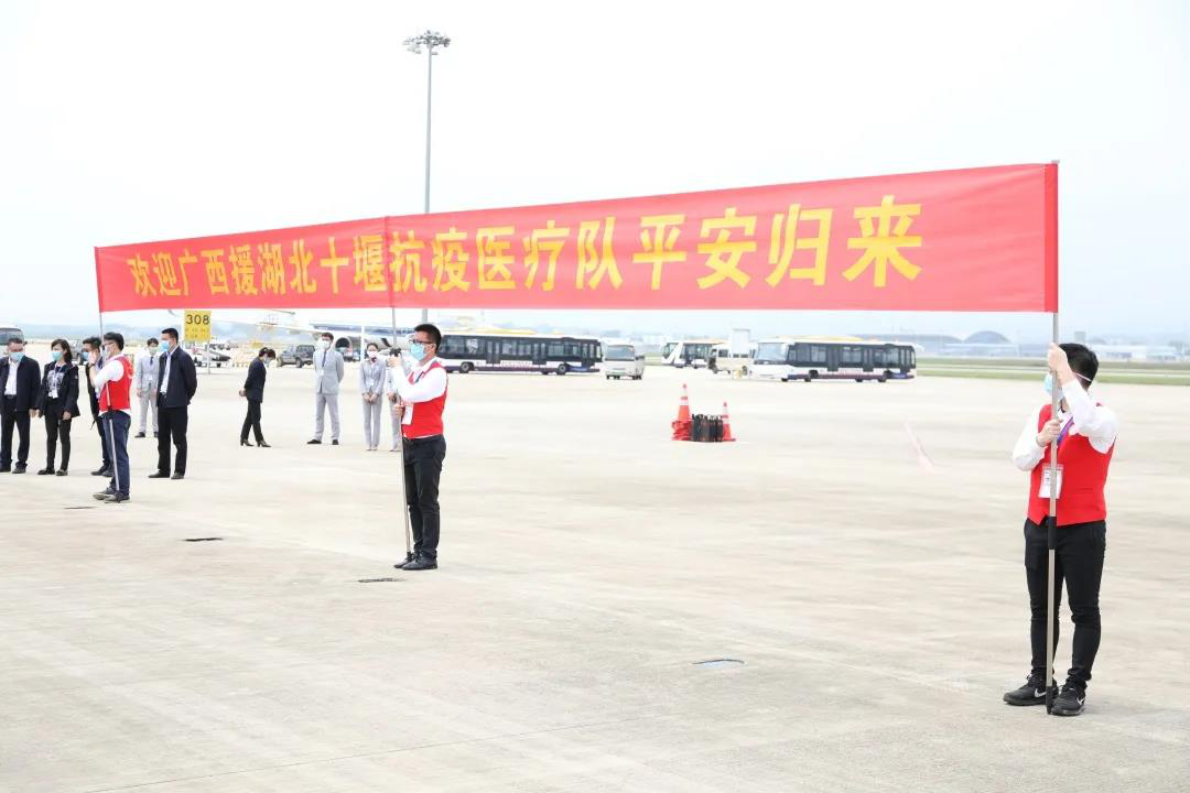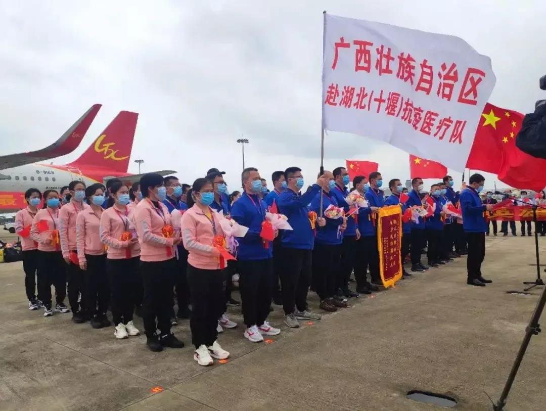春暖花开时,十堰“桂”人归。3月21日上午,Beat365援助湖北十堰市的11名医疗队员平安回到南宁。