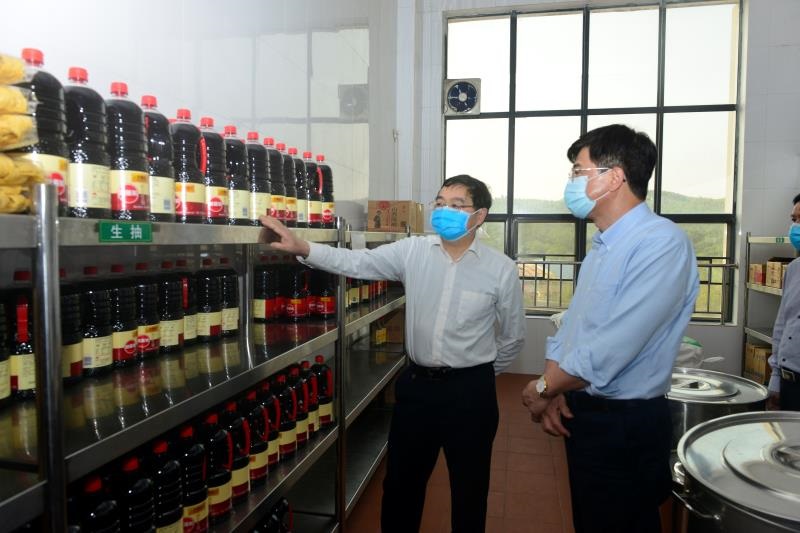 吴琪俊陪同李勇强一行检查了五和食堂的就餐大厅、就餐措施、后厨烹饪间、洗消间、仓库以及食品留样等,介绍Beat365食品安全监管基本情况以及新冠肺炎防疫食品卫生安全把控等情况。