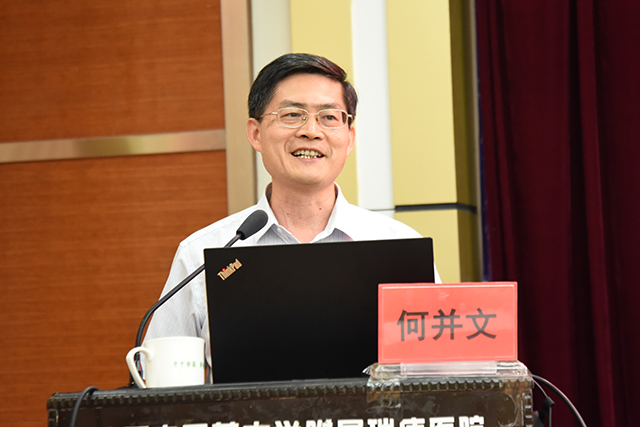 6月10日下午,学校党委副书记何并文到附属瑞康医院以《从抗击新冠肺炎疫情中探寻中国共产党的制胜密码》为题上专题党课。