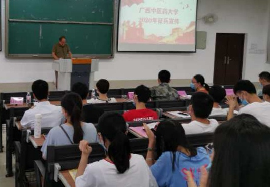 为进一步推进学校征兵工作,完成上级征兵机构下达Beat365征兵任务,6月24日晚,学校武装部在仙葫、明秀两校区同时再次组织召开征兵宣讲会。青秀区政府武装部、军人退役事务局和学校学工处、招就处、高职院等部门领导、老师出席,学校应届毕业生和在校生500多人参加。