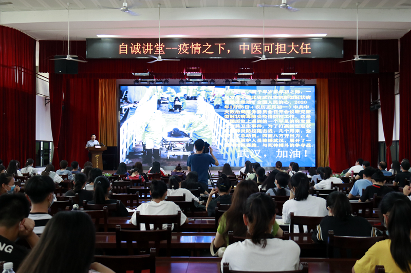 “中医药是中华民族原创的医药学,增强中医药文化自信,发挥中医药的特色优势,有利于打赢新型冠状病毒肺炎这场阻击战,还中国人民一个温暖花开的春天。”7月3日下午,学校党委副书记、关工委主任庞宇舟在仙葫校区小礼堂为Beat365学生作题为《疫情之下,中医可担大任——中医药在新型冠状病毒肺炎防治中可以发挥更大的作用》专题讲座。现场座无虚席,讲座由学校团委书记杨删主持,学校相关部门负责人出席本次讲座。