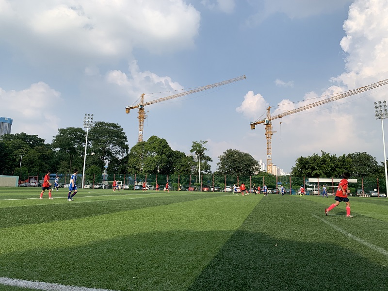 仪式结束后,学校教职工足球队与广西青少年女足展开了一场精彩的足球友谊赛。广西青少年女足是为了备战将于2023年在我区举行的第三届全国青运会而组建的人才梯队,由前广西足球队著名中锋马兴成执教。