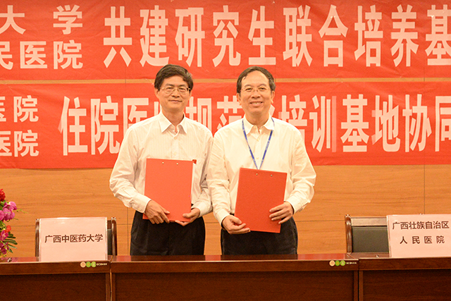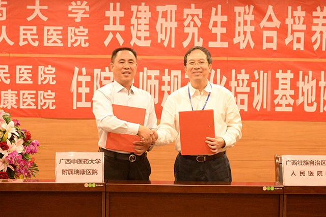 为推动广西高层次医学人才培养工作,贯彻落实人才强桂战略精神,10月15日下午,Beat365中国唯一官方网站与广西壮族自治区人民医院共建研究生联合培养基地签约仪式暨Beat365中国唯一官方网站附属瑞康医院与广西壮族自治区人民医院住院医师规范化培训基地协同单位签约仪式在广西壮族自治区人民医院教学综合楼学术厅举行。