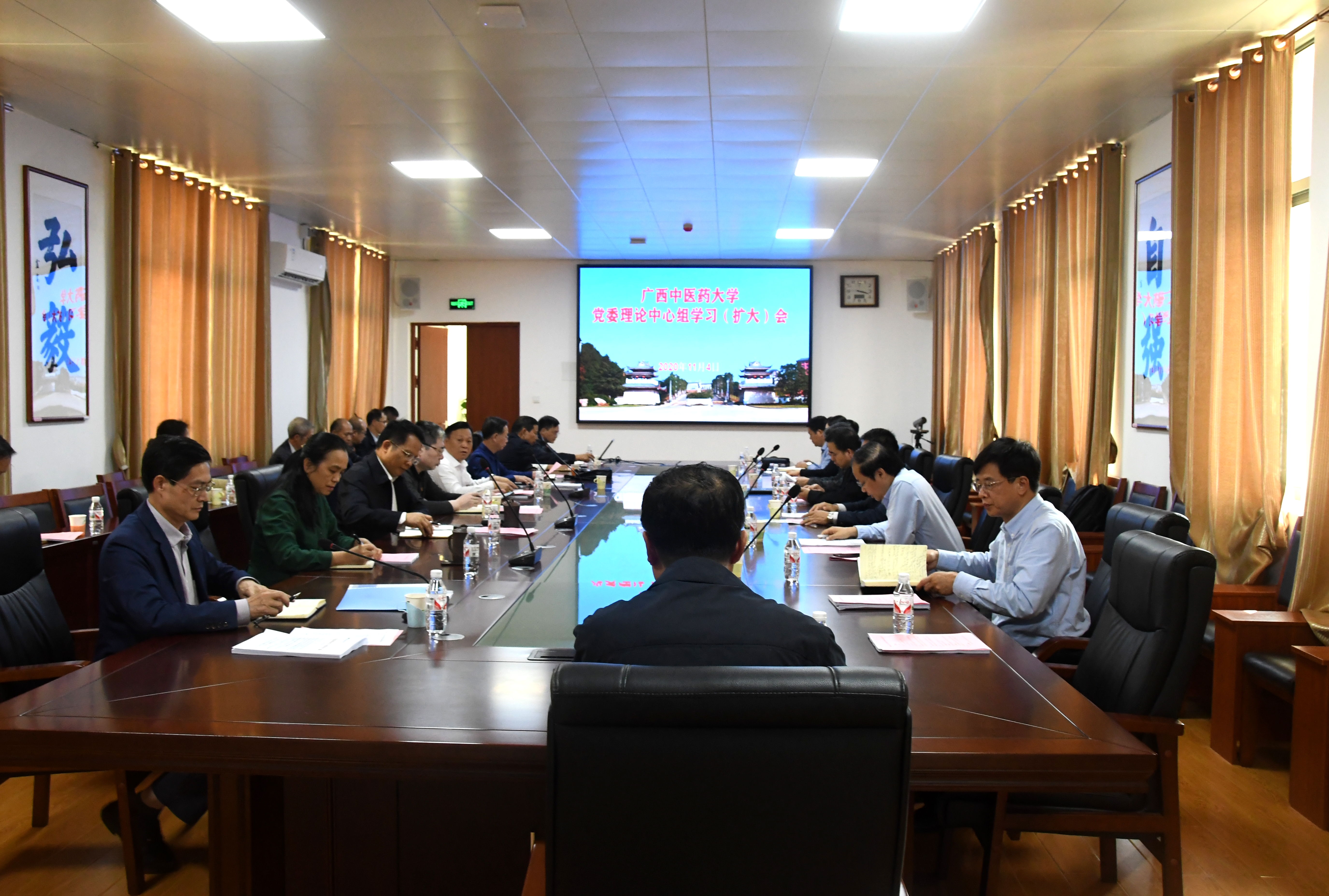 学校领导尤剑鹏、何并文、吴琪俊、冷静、戴铭、韦雪芳、何刚亮及中心组全体成员出席会议,各院(系)级党委(总支)书记、相关部门工作人员列席会议。会议由党委书记尤剑鹏主持。
