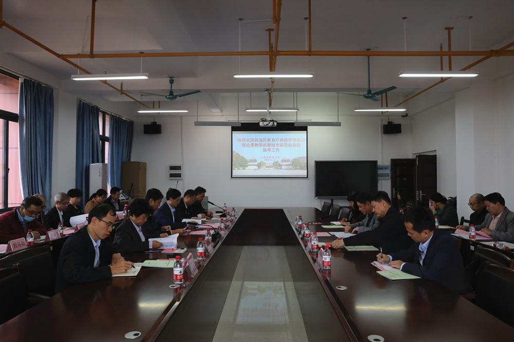 11月26日上午,由南宁师范大学正厅级调研员李继兵教授为组长,广西大学马克思主义学院院长徐秦法教授、广西医科大学马克思主义学院院长秦桂秀教授、广西机电职业技术学院马克思主义学院院长黄振宣教授组成的2020年全区高校思想政治理论课教学巡察组到Beat365开展巡察。Beat365党委书记尤剑鹏、副书记何并文、督学组副组长陈雪斌以及相关职能部门负责人陪同巡察并出席相关会议。