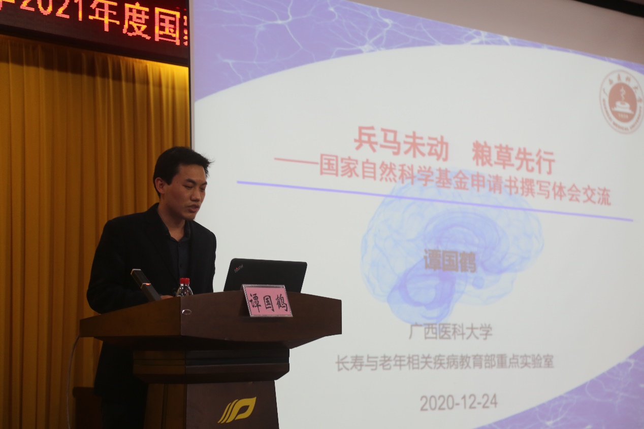 12月24日,学校在仙葫校区召开2021年度国家自然科学基金项目申报动员会暨培训会。学校党委书记尤剑鹏、副校长冷静、各二级单位主要领导及分管科研的领导、科管人员及项目负责人代表等300多人参加会议。会议特邀北京大学李川昀教授及广西医科大学谭国鹤教授作专题报告。会议由冷静主持。