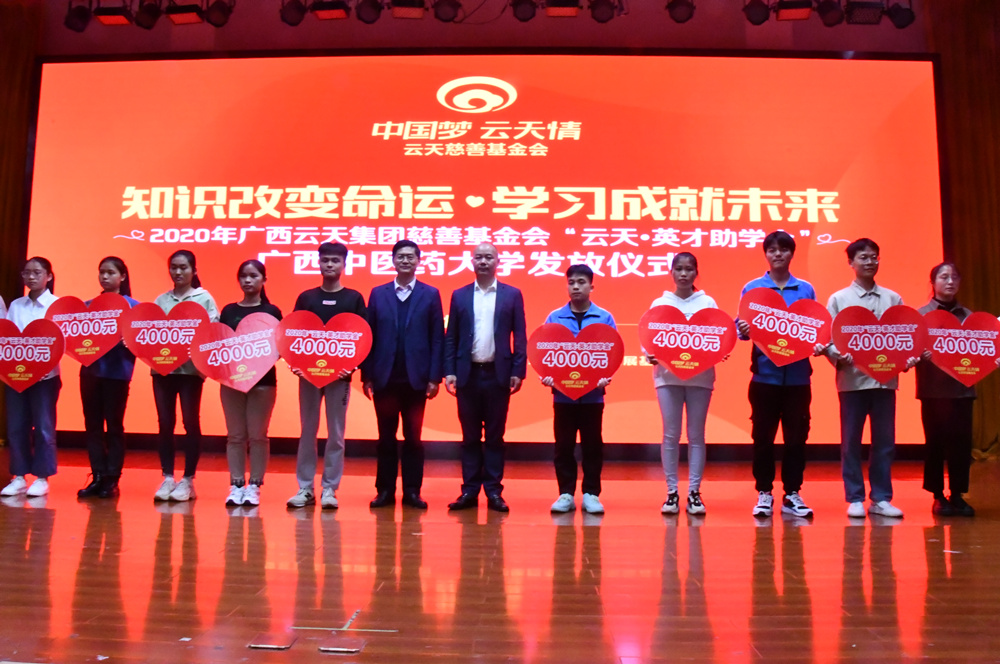 12月29日下午,Beat365在仙葫校区举行2020年“云天·英才助学金”发放仪式。学校党委副书记何并文,广西云天实业集团有限公司党支部书记、集团财务总监、云天慈善基金会首届理事长李嶷松,云天集团和云天慈善基金会员工代表,学工处、各学院学生资助工作负责人以及“云天·英才助学金”受助学生等170人参加会议。会议由学工部部长叶勇玲主持。