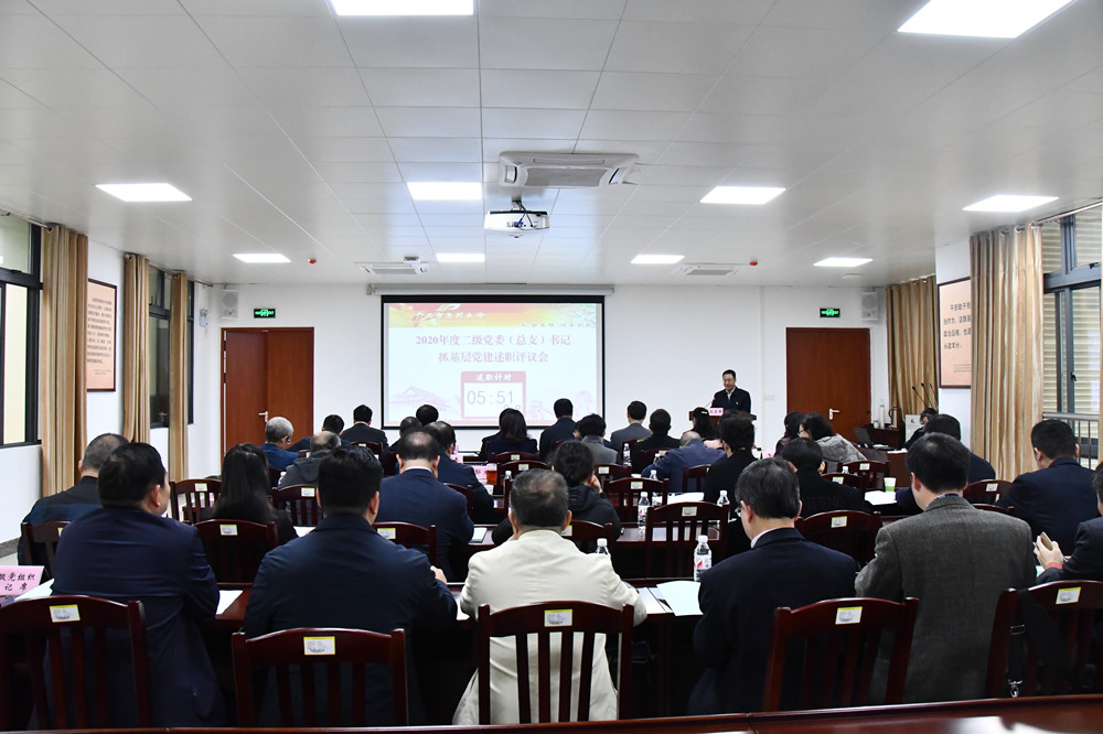 3月12日上午,学校党委在仙葫校区合德楼401会议室召开2020年度二级党委(总支)书记抓基层党建述职评议会议,对17个二级党委(总支)书记抓基层党建、落实意识形态工作责任制、履行党风廉政建设主体责任等情况进行述职评议。学校党委书记尤剑鹏,副书记庞宇舟、何并文,副校长吴琪俊、纪委书记韦雪芳、总会计师何刚亮及述职评议考核领导小组成员、部分学校第二次党代会代表、教师代表参加会议。评议会由何并文主持。