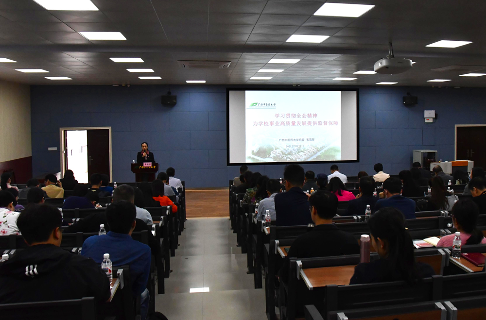 会上,韦雪芳以“学习贯彻全会精神,为学校事业高质量发展提供监督保障”为主题,继学校中层干部大会之后再次专题领学中央纪委十九届五次全会、自治区纪委十一届七次全会主要精神,及时跟进学习习近平总书记重要讲话和指示批示精神,剖析了当前全面从严治党和反腐败斗争的新形势,从七个方面提出了2021年校纪委的工作思路。并以案促教,要求全体同志要清醒看到腐败这个党执政的最大风险仍然存在,要始终保持“赶考”的清醒,保持对“围猎”的警觉,把严的主基调长期坚持下去。