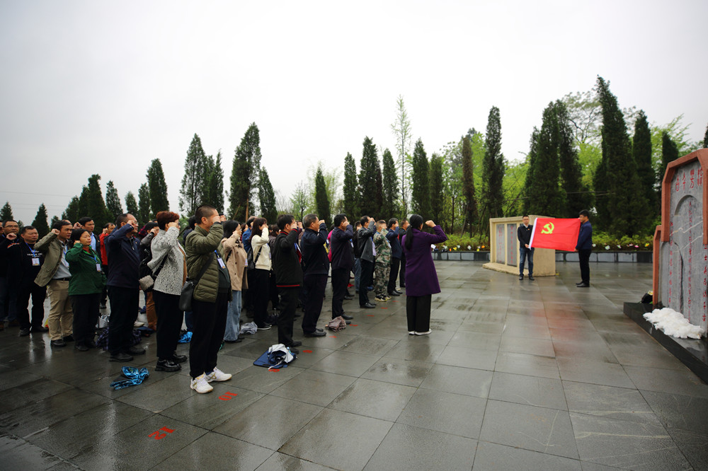 灌阳是红军进入广西的第一站,也是湘江战役第一仗新圩阻击战的打响地。在新圩阻击战酒海井红军纪念园,阴雨纷纷,天地同悲,学员们在雨中聆听了新圩阻击战的情况,瞻仰了纪念塔、红军墓、酒海井红军烈士纪念碑,参观了新圩阻击战史实陈列馆等。光华铺是界首至兴安间桂黄公路边的一个小村庄,开阔的水田和坡度不大的丘陵,1934年一场事关中共中央安全、无险可守的阻击战——光华铺阻击战在这里打响,红三军团2000多名将士长眠于此。在光华铺阻击战烈士陵园,学员们依次向烈士墓献花,并举行了重温入党誓词仪式。界首位于兴安县与全州县的交界处,是桂北水陆交通枢纽、湘江的重要渡口,是中央红军纵队渡过湘江时最重要的一个渡河点。在渡江总指挥部——红军堂前,学员们站着聆听了万来志博士关于湘江战役的介绍,进一步领悟湘江战役在红军长征中的历史意义和现实启示,进一步坚定了理想信念,从中汲取了智慧、凝聚了力量,增强了忠诚信仰、责任担当、奋进动力。