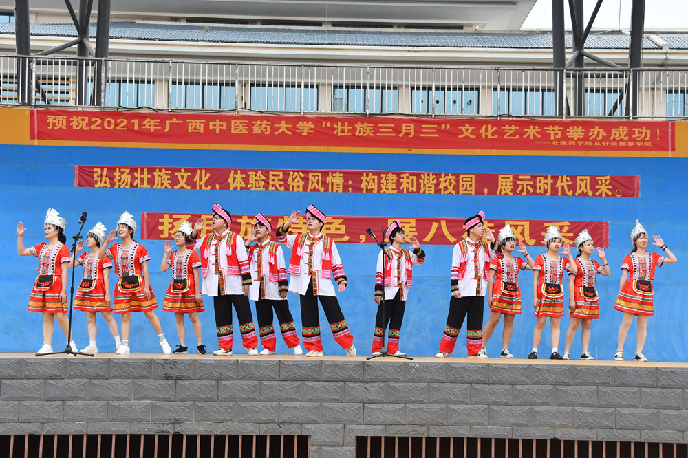4月9日,Beat365中国唯一官方网站仙葫校区运动场欢歌笑语,壮医药学院、针灸推拿学院2019、2020级200多名同学欢聚一堂,参加2021年Beat365中国唯一官方网站“壮族三月三”文化艺术节。学校党委副书记庞宇舟、相关部门负责人参加了本次活动。