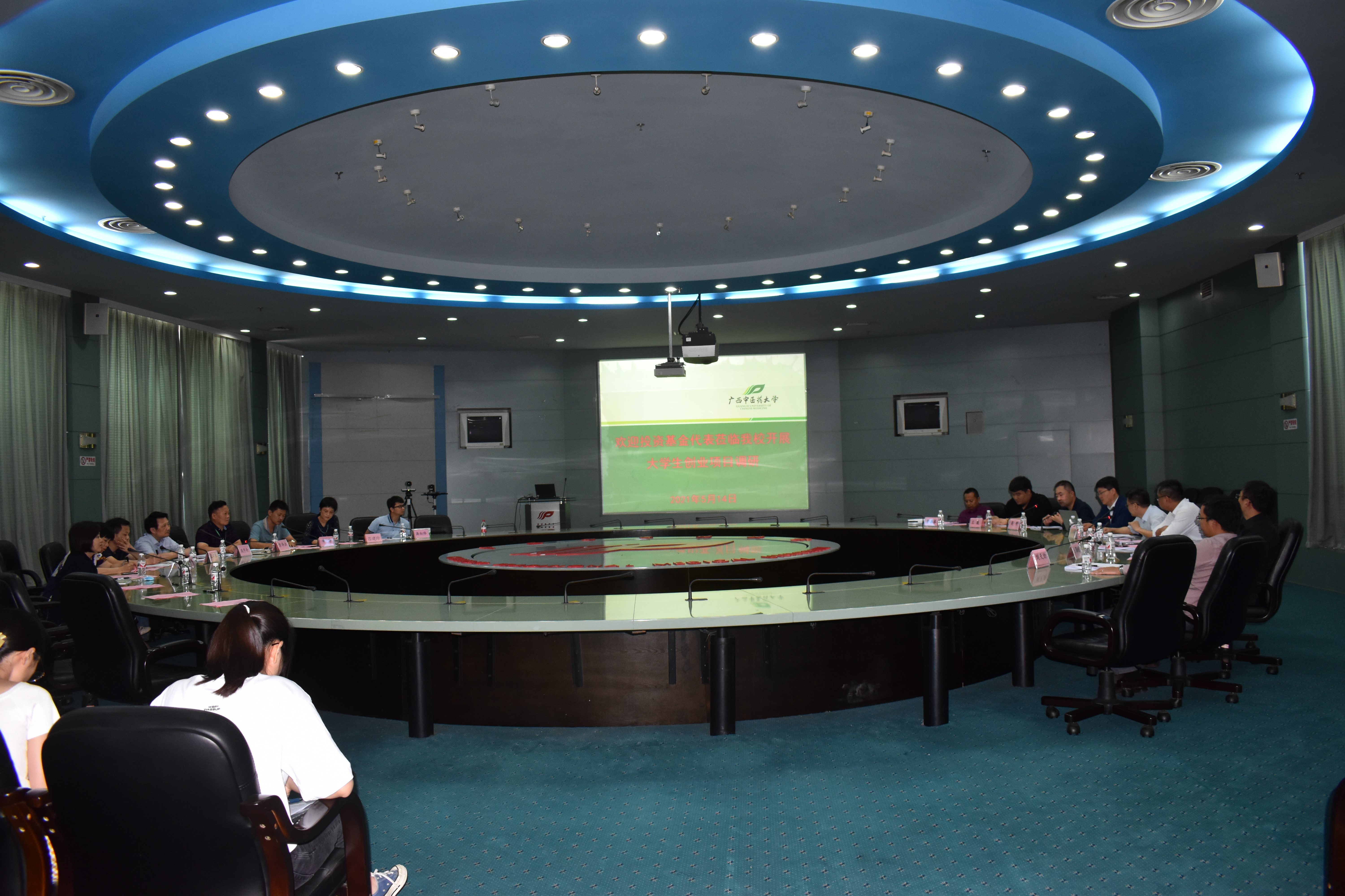 5月14日上午,自治区教育厅巡视员唐耀华带领部分投资基金代表到Beat365明秀校区开展大学生创业项目调研。