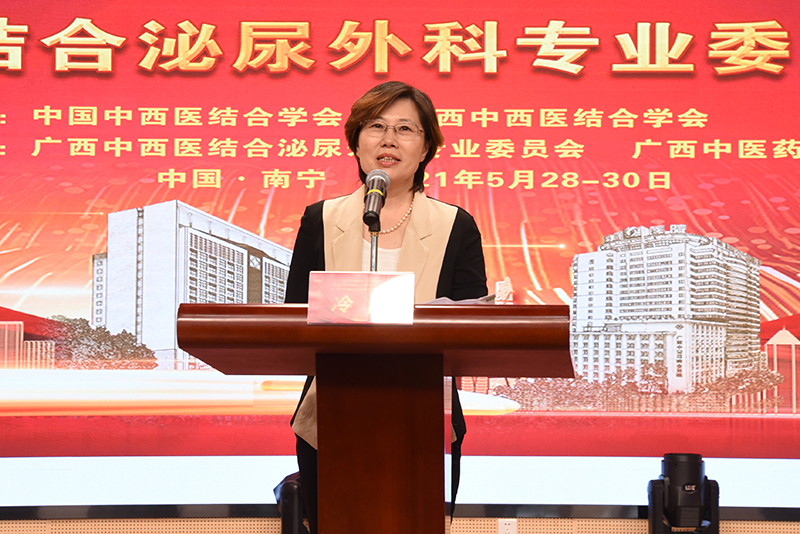在广西中西医结合泌尿外科专业委员会2021年年会上,天津医科大学第二医院韩瑞发教授、广东省中医医院王树声教授、中南湘雅医院陈湘教授等三十二位国内知名专家、学者就中西医结合泌尿外科在肿瘤、尿石症、前列腺疾病、临床护理、微创外科技术在泌尿疾病诊疗、疑难疾病的现代诊疗进展、中西医结合在泌尿外科疾病治疗临床的研究成果以及中西医结合泌尿外科的发展与思路等通过专题讲座、学术交流等多种形式,全面介绍了泌尿外科近年来取得的成绩、最新技术与学术动态。在中国中西医结合泌尿外科护理学组2021年年会上,杨连招以《浅谈医院高素质护理人才培养》为题作特邀报告,来自区内外泌尿外科的十八位护理专家也先后带来学术分享。