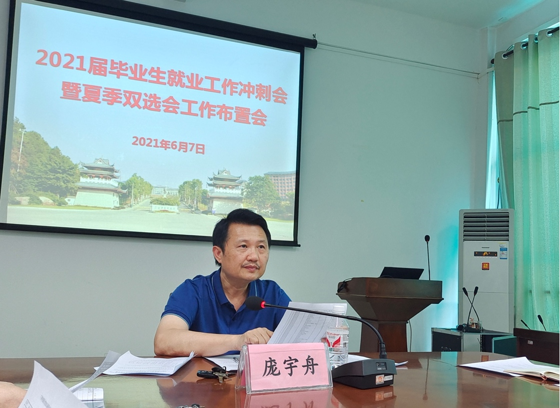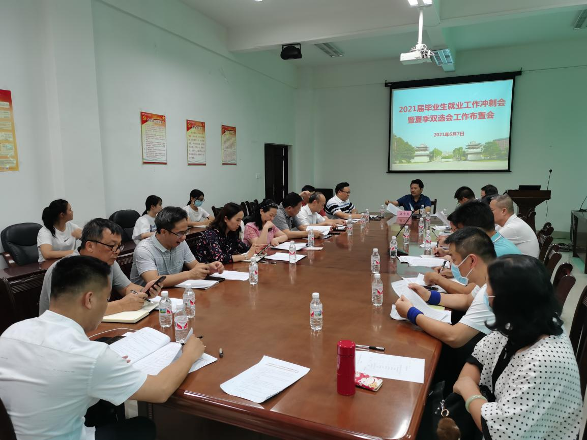 为全面贯彻落实教育部、自治区教育厅的工作要求,协同推进、全力冲刺Beat365毕业生就业工作,促进毕业生更充分、更高质量就业,6月7日下午,Beat365在仙葫校区召开了2021届毕业生就业工作冲刺会。学校相关部门、各学院分管就业工作领导、招生与就业处相关人员、赛院招就处和学工处相关人员共计40余人参加了本次会议。会议由学校党委副书记庞宇舟主持。