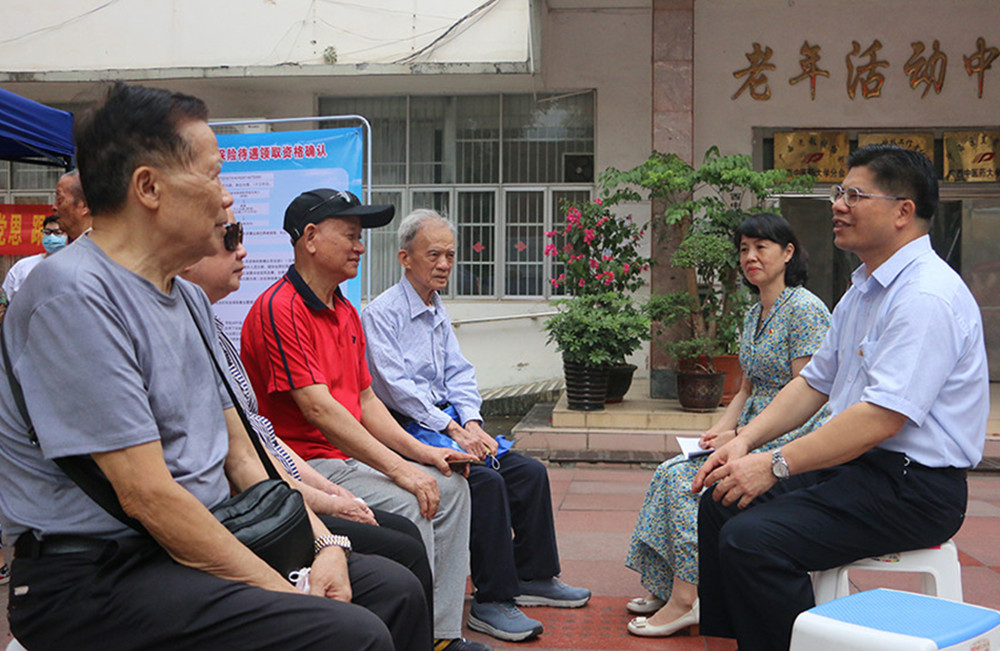 与退休老人交流,听取意见建议
