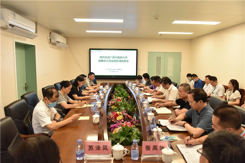 6月15日-16日,学校校长姚春、党委副书记庞宇舟、副校长戴铭及相关职能部门负责人分别到第一附属医院、附属瑞康医院、制药厂、附属国际壮医医院调研并召开座谈会。