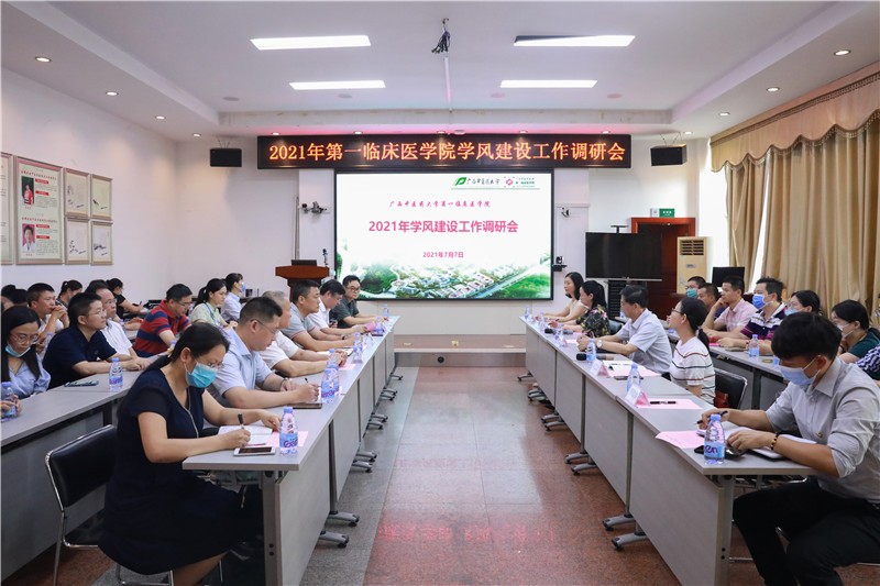 何并文指出,学风建设是一项长期系统工程,是学校教育质量和管理水平的重要标志,也是学生思想品质、学习精神和大学文化的重要组成部分,关系到学校的生存发展,学校对此十分重视,希望通过调研了解目前学风建设方面存在的问题。他强调,临床医学院要全员、全过程、全方位的把握医学生成长成才的各个环节,要狠抓学风教风中的问题,精准的解决现存问题。他表示,第一临床医学院具有悠久的人文历史,拥有强大的师资队伍以及丰富的临床教学经验,为学校的发展作出了重要贡献,要充分肯定自己的价值和站位,使我们培养的医学生真正能成为中医药事业建设合格的接班人,为我们党的教育事业贡献自己的一份力量。
