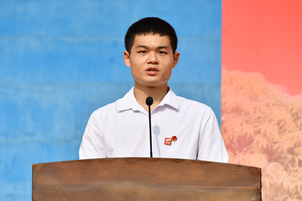开学典礼上,学校领导为2021级新生佩戴校徽,庞宇舟带领新生领誓医学生誓言。教师代表基础医学院中基内经教研室蒋筱、在校生代表2019级制药工程专业刘帆、2021级博士研究生代表苏少亭、2021级预防医学专业代表廖晓婷分别在开学典礼上进行了发言。