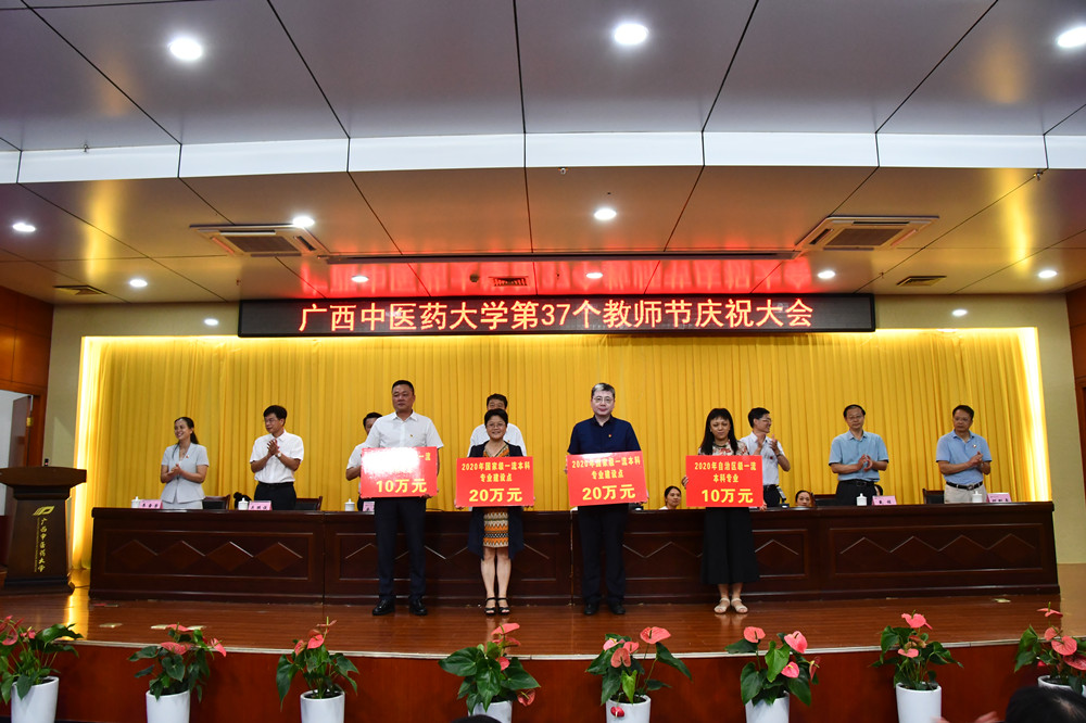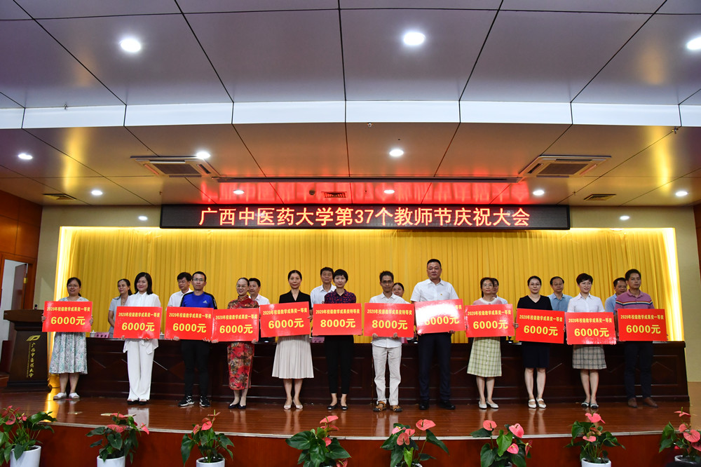 赓续百年初心,担当育人使命。9月10日下午,Beat365中国唯一官方网站第37个教师节庆祝大会在仙葫校区图书馆第二会议室举行。学校党委书记尤剑鹏,党委副书记、校长姚春,党委副书记庞宇舟、何并文,副校长吴琪俊、戴铭,纪委书记韦雪芳,总会计师何刚亮,学校老领导朱华、罗伟生、陈雪斌,各单位、部门负责人,教学督学专家代表,受表彰教师及本科生、研究生代表等近200人出席主会场活动,各二级学院、附属单位还设置分会场并组织师生代表收看庆祝大会实况。庆祝大会由庞宇舟主持。