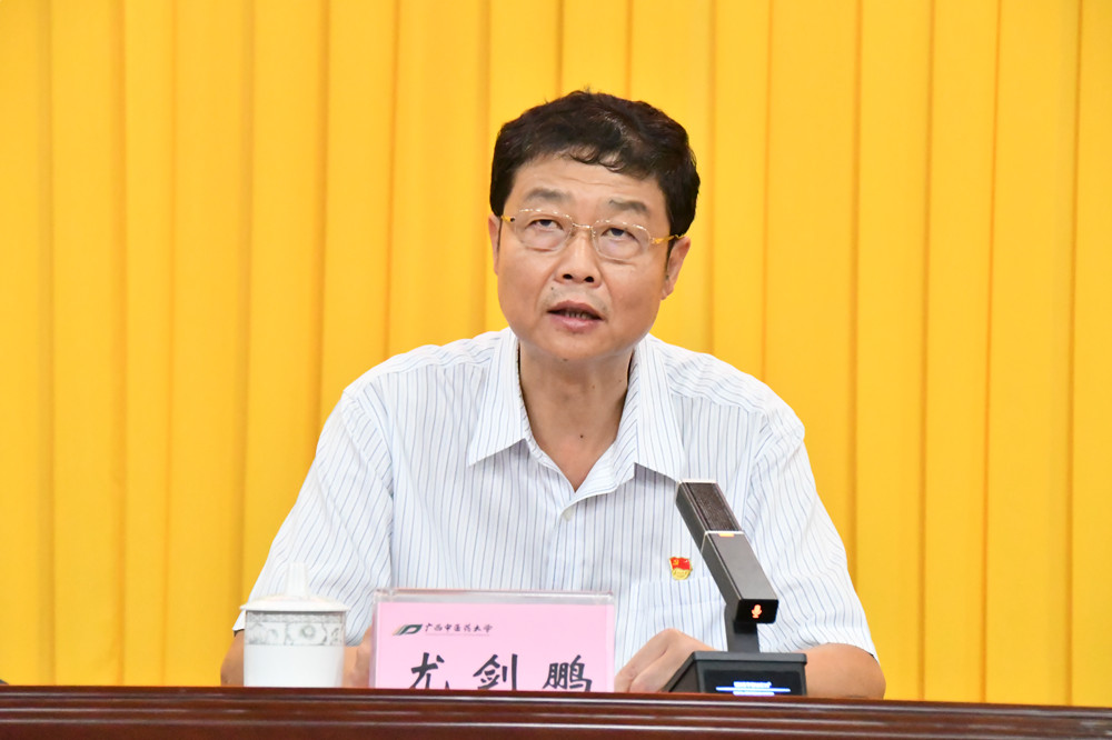 尤剑鹏在讲话中指出,广大教师要深刻认识自己肩负的职责和使命,锤炼教育报国之志,展现爱党爱国、敬业奉献的精神风貌,切实担负起立德树人根本任务,向全面建成社会主义现代化强国的第二个百年奋斗目标迈进。尤剑鹏就加强学校教师队伍建设提三点意见:一是深入开展“四史教育”,推动理论武装再强化;二是扎实开展师德专题教育,培育尊师重教良好风尚; 三是加强高层次人才队伍建设,全面提升教师队伍质量。尤剑鹏指出,广大教师要见贤思齐,主动学习优秀教师的事迹与精神,并向身边的优秀教师看齐,学习他们热爱教育的情怀与坚守,做学生为学、为事、为人的示范;要深入开展师德专题教育,坚持正向激励和负面约束“两手抓”,引导教师守住师德底线,争做大先生,自觉履行教书育人的职责,做党和人民满意的“四有”好老师。