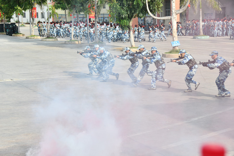 军训汇演上,两所训练基地的新同学们进行了拳术、匕首、战术等演练科目的汇报展示,在整个展示过程中,同学们的精采表现,赢得了主席台上领导和观众的热烈掌声。