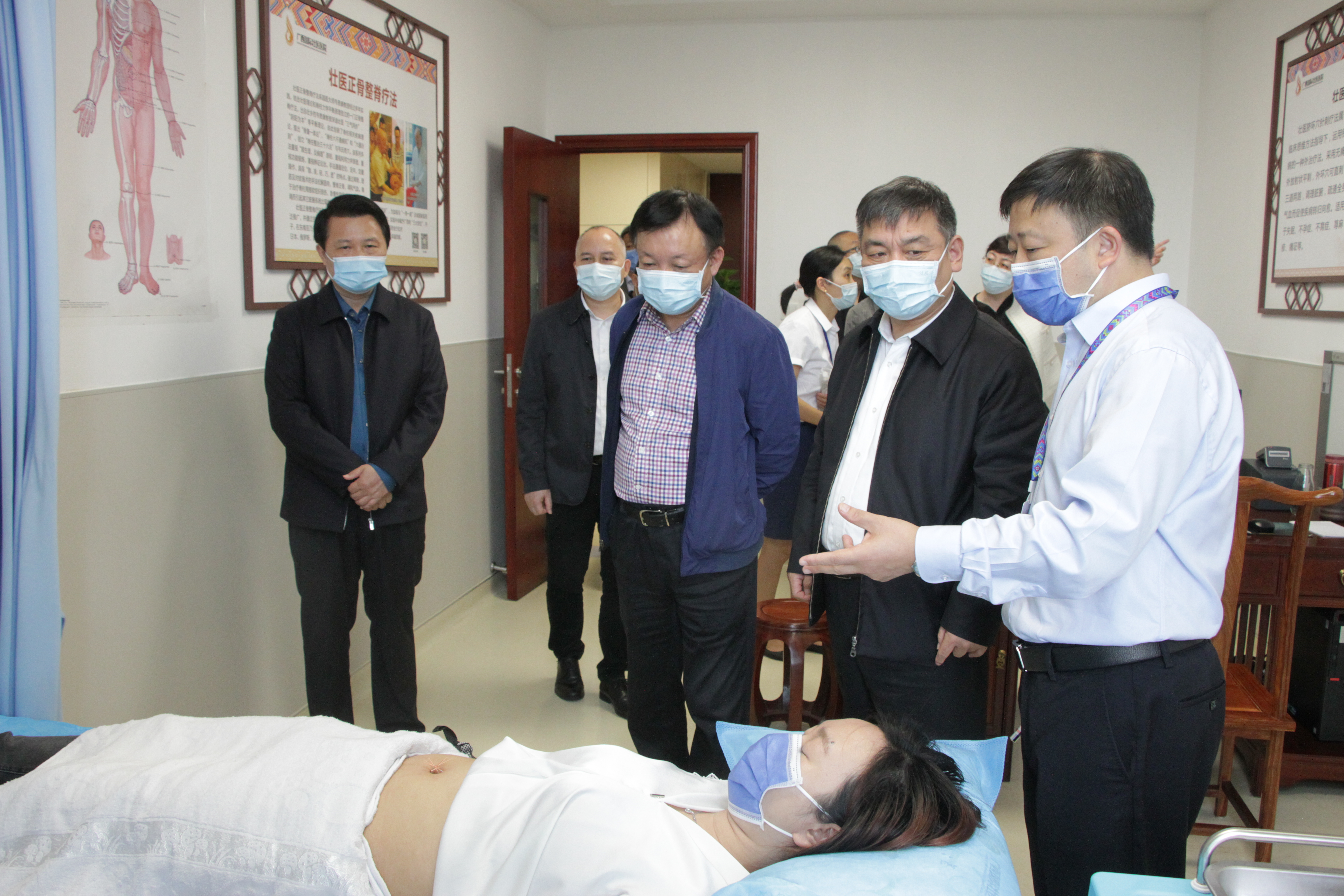 在附属国际壮医医院实地参观考察壮医脐环穴针刺疗法