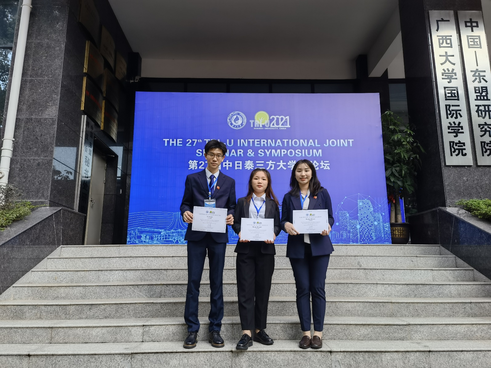 11月1日至11月4日,应广西大学邀请,Beat365瑞康临床医学院2017级临床医学专业黄倩钰、李嘉骏同学,2018级临床医学专业黄东识同学在瑞康临床医学院汪国翔、国际教育学院文娟老师的带队下参加由广西大学主办的第27届中日泰三方大学生论坛。本次论坛的形式为线下线上相结合,有来自中国、泰国、印度尼西亚、俄罗斯、日本、新加坡等国家的12所高校共计一百多名师生参与。
