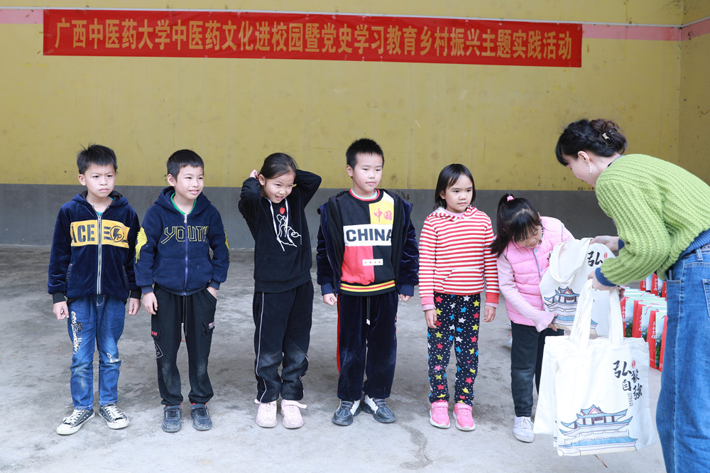 活动由学校党委宣传部、博物馆、药学院共同举办,以“弘扬中医文化 助力乡村振兴”为主题,开展了中医药文化进校园、进乡村科普宣传,党史学习教育“我为群众办实事”乡村振兴帮扶主题实践活动等,以中医药文化宣传展示、中草药种植咨询、中医药文化互动体验等方式向欧里村小学师生、群众介绍了中华文明的瑰宝——中医药文化,让师生及群众在过上小康生活后,进一步体验乡村振兴、健康广西的成果,与全国人民一道迈向第二个百年奋斗目标新征程。