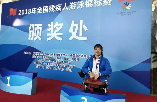坐着轮椅穿梭在校园中,没有双腿却绽放自信笑容的她,总会吸引路人的目光。当她换上泳装,跃进泳池,像“无尾美人鱼”一样自由遨游时,吸引的不仅是观众的目光,还有掌声。