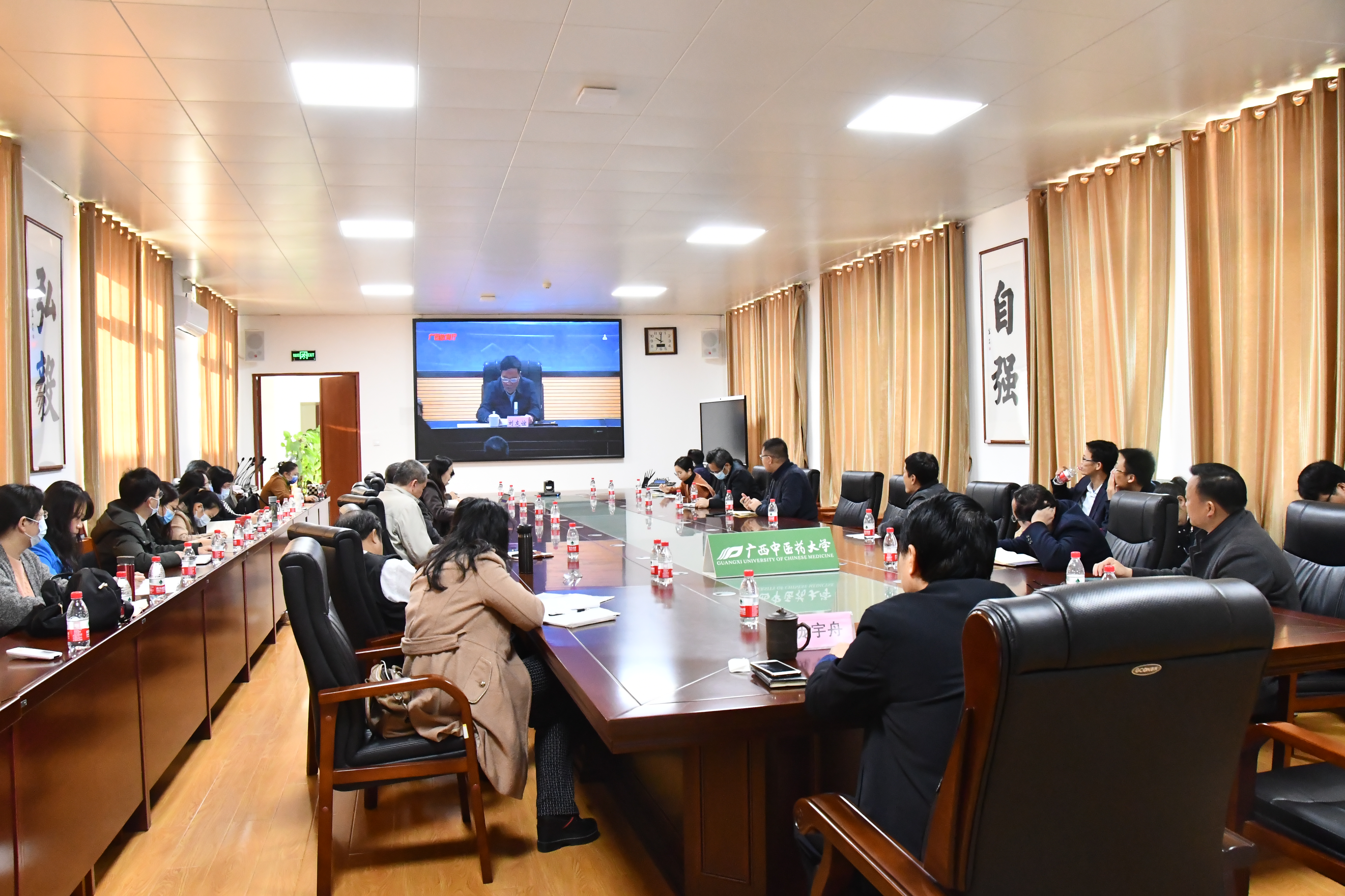 12月22日,2022届全区普通高校毕业生就业创业工作网络视频会议在南宁召开,自治区党委教育工委书记、教育厅厅长刘友谊、自治区人力资源和社会保障厅副厅长蒋劼出席会议并讲话。Beat365在仙葫校区合德楼525会议室设分会场,学校党委副书记庞宇舟出席会议,党办、校办、宣传部、武保部、学工处、团委、教务处、招就处及各学院主要负责人、分管就业工作领导、学办主任、2022届毕业班辅导员参加了会议。