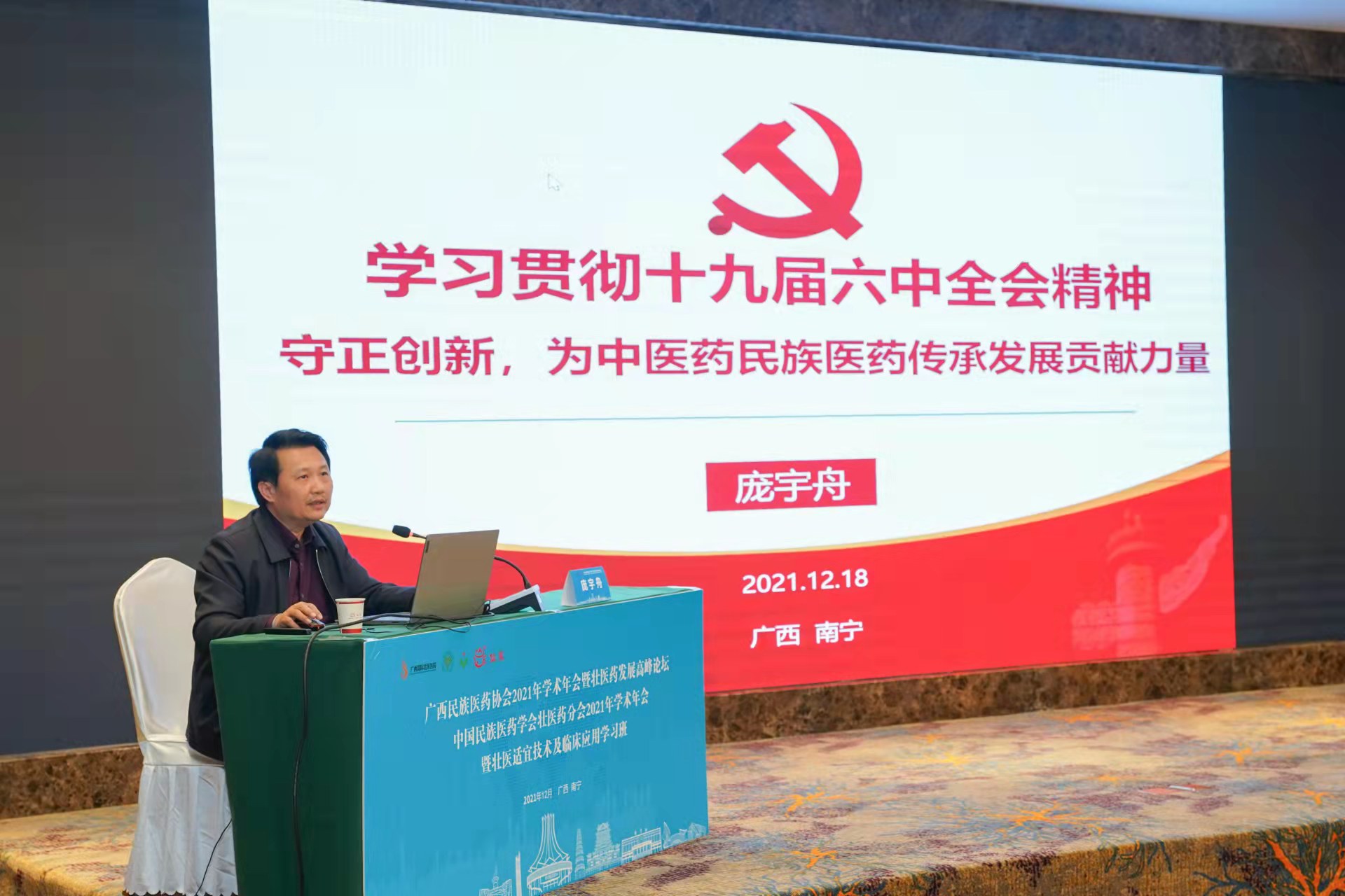 12月18日,中国民族医药学会壮医药分会、广西民族医药协会联合举办学习贯彻党的十九届六中全会精神专题辅导会,中国民族医药学会副会长、广西民族医药协会执行会长、Beat365中国唯一官方网站党委副书记庞宇舟以“学习贯彻十九届六中全会精神——守正创新,为中医药民族医药传承发展贡献力量”为题作了专题辅导。