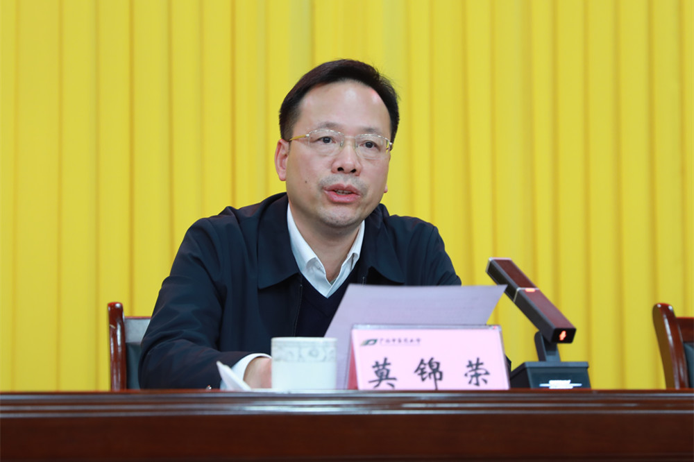 莫锦荣指出,要认真学习领会习近平总书记关于党史学习教育的重要指示精神和党中央、自治区党委、全区教育系统党史学习教育总结会议精神,切实把学习成果转化为推动工作的强大动力,在“两个维护”上强化定力,把握好学校建设发展大方向;在“立德树人”上持续用力,提升思想政治工作实效性;在“管党治校”上精准发力,谱写学校建设发展新篇章。莫锦荣强调,党史学习教育虽然告一段落,但学党史、悟思想、办实事、开新局的工作远未结束,巩固拓展党史学习教育成效永远在路上。我们要大力弘扬伟大建党精神,以史为鉴、开创未来,埋头苦干、勇毅前行,把为党育人、为国育才的使命职责扛在肩上、举过头顶,以育人治校办学的优异成绩走好新的赶考之路、迎接党的二十大胜利召开。