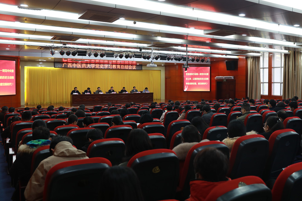 莫锦荣在总结讲话中,全面回顾、系统总结了学校党史学习教育的有益成果和显著成效,他指出,学校党委把党史学习教育作为贯穿全年工作的重要政治任务,强化组织领导,健全工作机制,压实责任,务求实效,第一时间成立党史学习教育领导小组,召开动员部署会,制定工作方案,通过立足于学、立足于用、立足于行,将党史学习教育与立德树人根本任务相结合,与近现代中医药事业发展相结合,与医疗卫生事业和乡村振兴相结合,实现“规定动作”精准到位、“自选动作”创新出彩的效果:一是立足于学,推动学习贯彻习近平新时代中国特色社会主义思想走深走实;二是立足于用,利用红色资源践行“为党育人、为国育才”初心使命;三是立足于行,为民解忧办实事,切实把以人民为中心的发展思想落到实处。