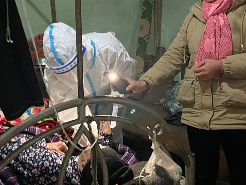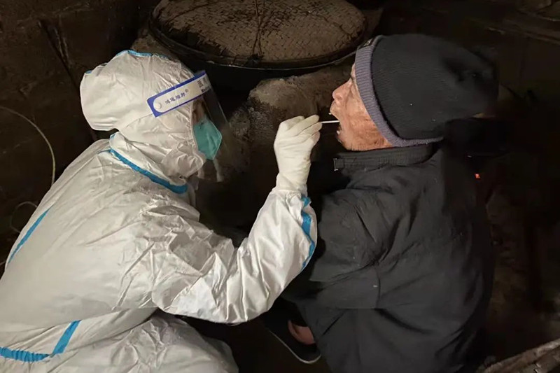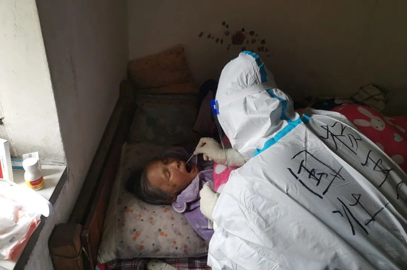 一附院核酸采样队队员入户为行动不便的高龄老人采样