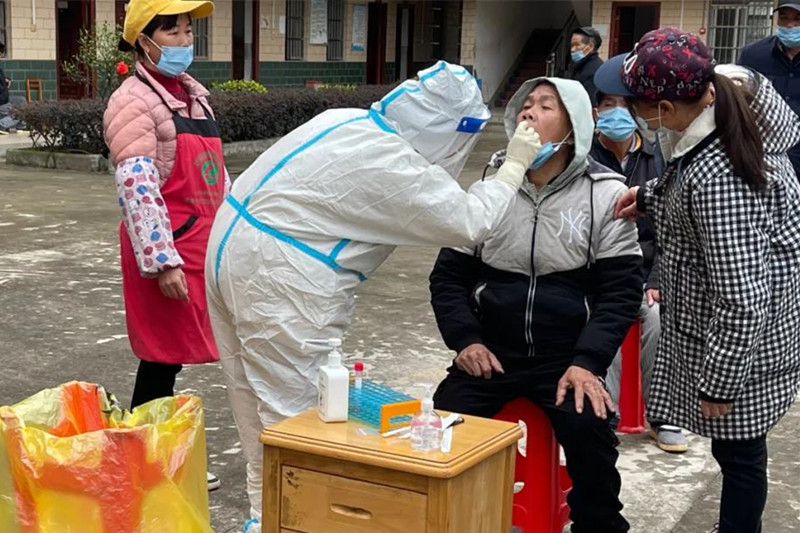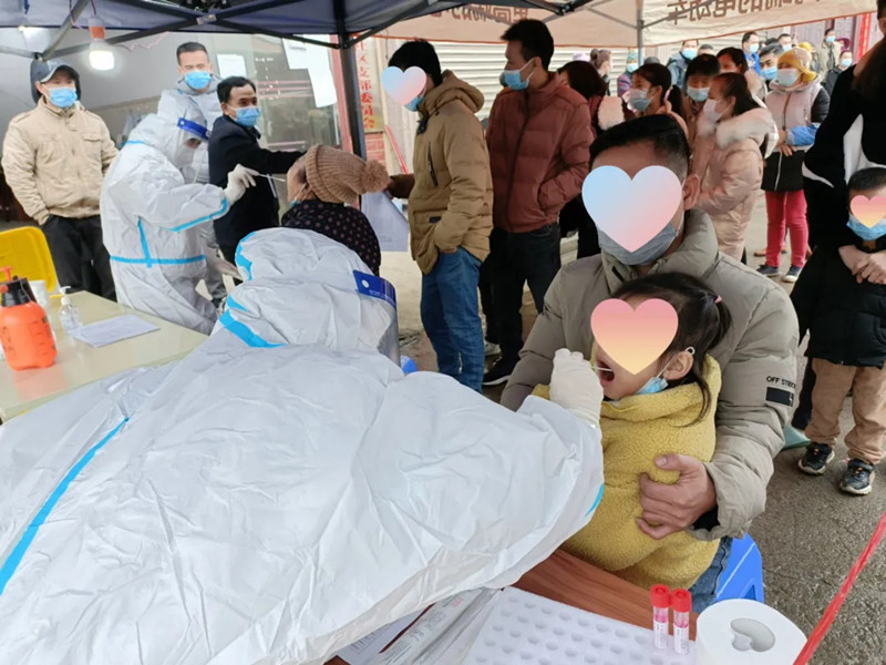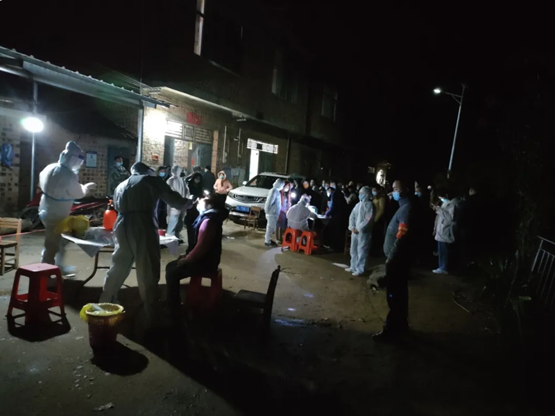 附属瑞康医院核酸采样队队员夜以继日地为居民采样
