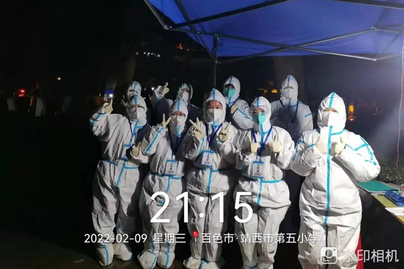 一附院支援百色市疫情防控临时党支部在支部书记苏宇虹的带领下,在核酸采样工作中,党员同志以身作责,冲锋在前,入村进屯,翻山越岭,为出行不便的老人上门采样,确保不落一户、不漏一人,把党史学习教育的成果转化为“我为群众办实事”的行动,用初心温暖民心、用行动诠释使命,在抗疫一线推动“学史力行”走深走实,充分发挥了临时党支部战斗堡垒作用和党员先锋模范作用,在执行疫情防控工作的过程中队员们始终用实际行动彰显着共产党员的政治自觉和使命担当。