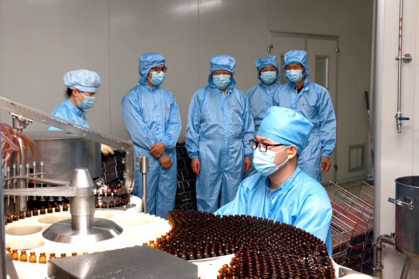 在制药厂东葛厂区,莫锦荣参观了红色文化长廊、生产车间、销售公司、质量保证部等,现场了解制药厂发展概况、企业党建、文化建设、生产、经营和产品质量等情况。座谈会上,莫锦荣听取制药厂党委书记何天富等领导的工作汇报后,对制药厂建厂50年来的成绩给予充分肯定。莫锦荣指出,制药厂有良好的优质资源和社会品牌,也有优秀的团队,要以转企改制为契机,加快发展步伐。就制药厂如何应对当下面临的机遇和挑战,莫锦荣提出了六点要求:一是注重战略谋划,构建发展新格局;二是注重策略方法,用足用好政策;三是注重开拓创新,勇于担当作为;四是注重质量效益,提升发展品质;五是注重防范风险,实行精细化管理;六是注重凝心聚力,推动高质量发展。