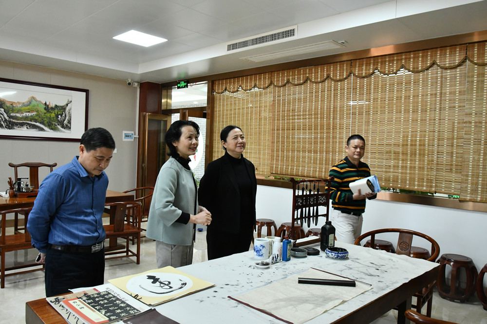 姚春观展结束后,在校长办公室、财务处、基建处、工会等部门负责人陪同下,莅临学校教职工活动中心调研。姚春详细查看了教职工活动中心各功能活动室,对活动中心的建设及开展的各项文体活动给予了肯定,并对教职工活动中心下一步工作进行了指导。