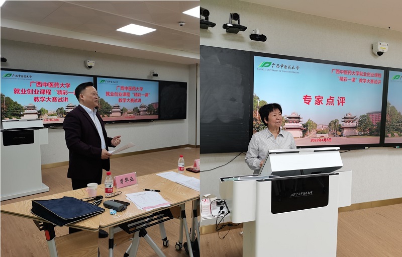 4月8日上午,全区高校教师就业创业课程“精彩一课”教学大赛校级选拔赛在明秀校区时珍楼举行,大赛由招生与就业处、创新创业学院(合署)处长、院长(兼)肖华业主持,学校督导陈雪斌、壮医药学院党委书记张煜、学生工作处副处长吴健文担任评委。
