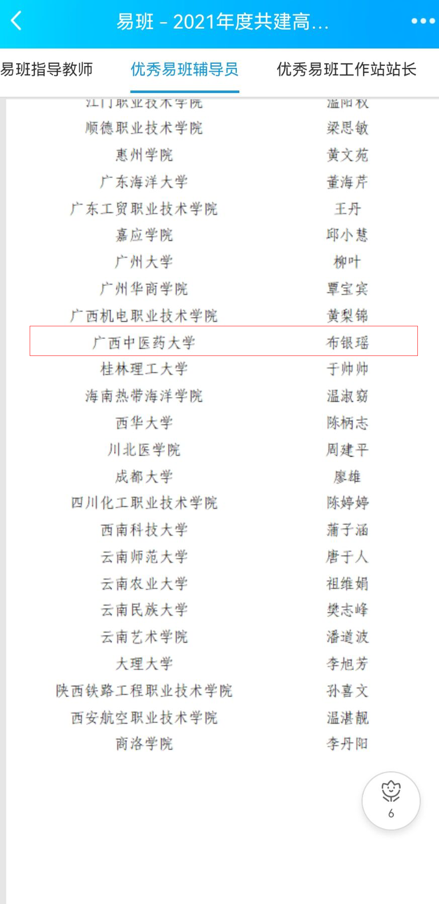 根据教育部易班发展中心近日消息,各省为表彰和展示2021年度在易班共建高校、易班共建案例、易班指导教师、易班辅导员、易班工作站站长等方面优秀的工作案例,分别开展了省级易班“十佳”(优秀工作案例)评选活动。教育部易班发展中心最终共收到全国25个省(市、自治区)及新疆生产建设兵团推荐的近900个优秀工作案例。经组织专家对各省推荐的材料进行遴选,并综合2021年全年高校双指数及易班活动参与情况,最终选取出236所高校5类431个案例入选2021年度全国易班共建高校优秀工作案例。其中,优秀易班共建高校100个,优秀易班共建案例88个,优秀易班指导教师86个,优秀易班辅导员70个,优秀易班工作站站长87个。