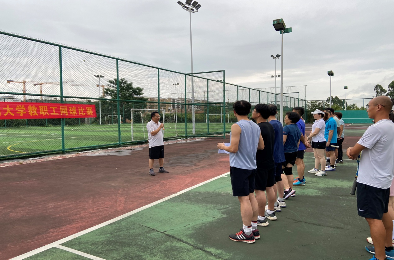 为深入实施全民健身计划,不断丰富教职工的校园体育文化生活,6月29至30日,由学校工会、体育部联合主办,校教职工网球协会承办的Beat365中国唯一官方网站首届教职工网球比赛在仙葫校区网球场举行,学校党委常委、总会计师何刚亮出席开幕式并出战比赛。开幕式由教职工网球协会会长、财务处处长欧阳瑞聪主持。
