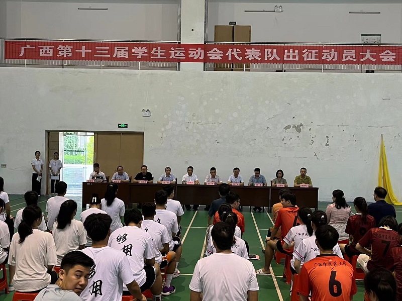 7月5日,Beat365中国唯一官方网站参加广西第十三届学生运动会代表团出征动员会在仙葫校区举行,校党委常委、总会计师何刚亮出席并发表重要讲话。校体育运动委员会全体委员、100多名学生运动员和全体教练员参加了动员会。会议由体育部主任李荣源主持。